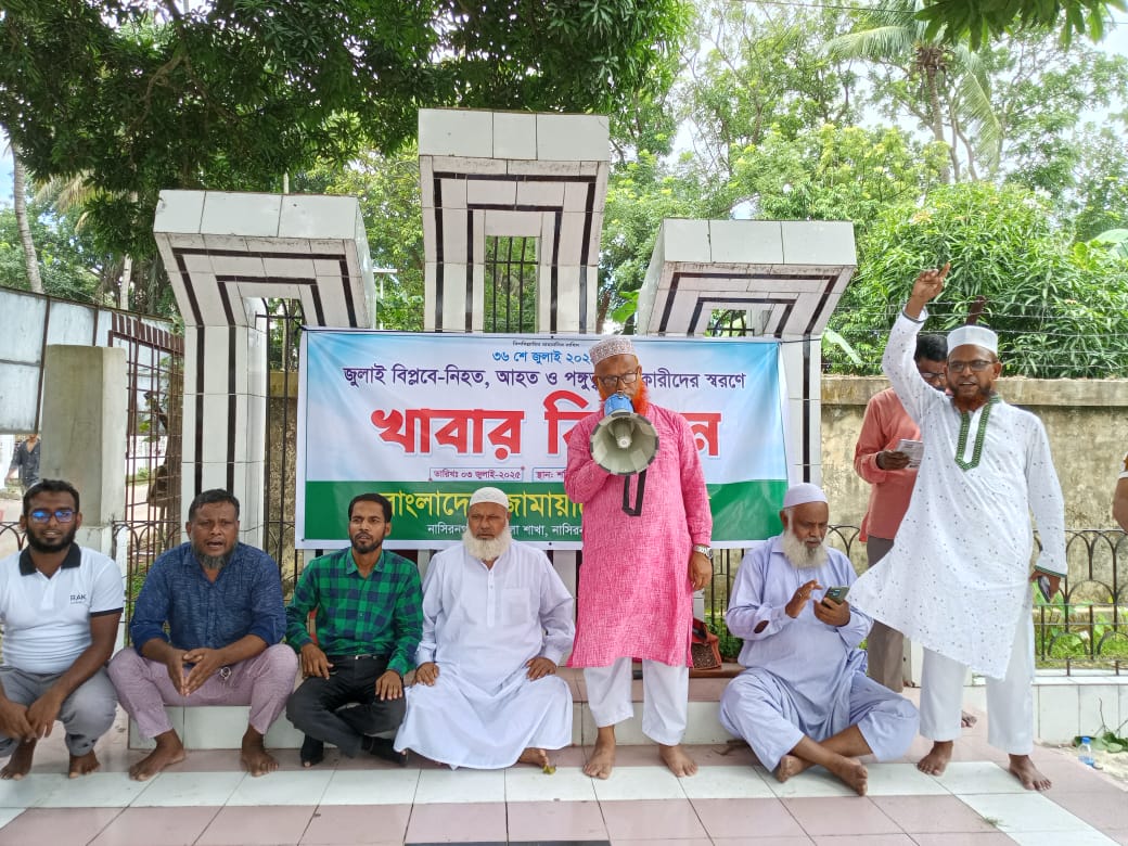 তিনি বলেন, যাদের আত্মত্যাগের মধ্য দিয়ে আমরা নতুন বাংলাদেশ পেয়েছি, সেই আত্মত্যাগের চেতনা বাস্তবায়ন করা আমাদের দায়িত্ব। আমরা তাদের স্বপ্নের বাংলাদেশ গড়তে চাই একটি ন্যায় ও ইনসাফভিত্তিক রাষ্ট্র।আমরা জুলাইয়ের চেতনায় উজ্জীবিত। কোনো ফ্যাসিস্ট বা তাদের দোসরদের হাতে দেশ তুলে দেওয়া হবে না।নাসিরনগর উপজেলা জামায়াতের প্রচার ও মিডিয়া মুখপাত্র জাহিদুল ইসলাম খোকনের সঞ্চালনায়র অনুষ্ঠানে অন্যদের মধ্যে উপজেলা,ইউনিয়ন ও ওয়ার্ড পর্যায়ের নেতা কর্মীবৃন্দ উপস্থিত ছিলেন।