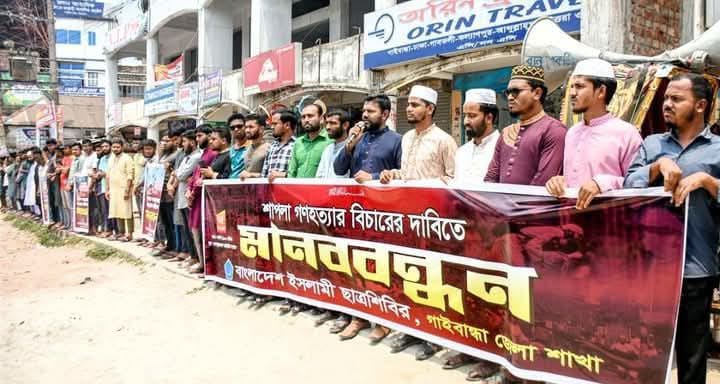 শাপলা চত্বরে গণ হত্যার প্রতিবাদে গাইবান্ধায় ছাত্রশিবিরের মানববন্ধন
