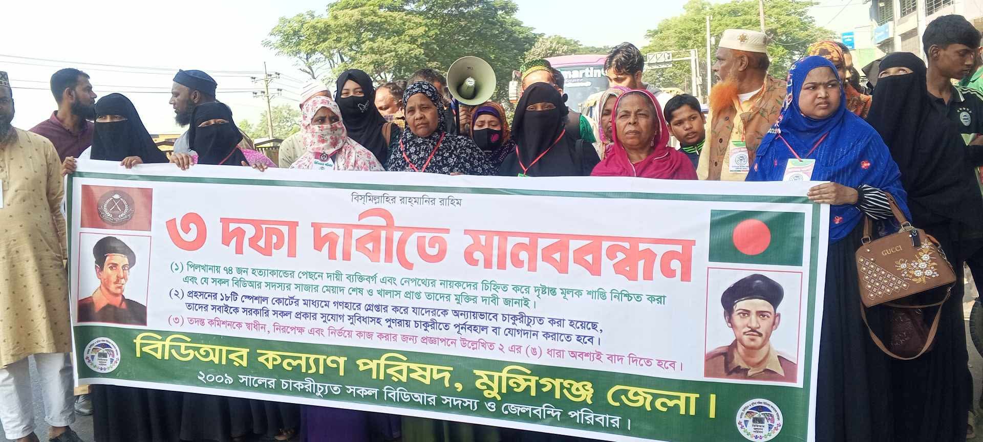 গজারিয়া কারাবন্দি বিডিআর সদস্যদের মুক্তি চেয়ে মানববন্ধন