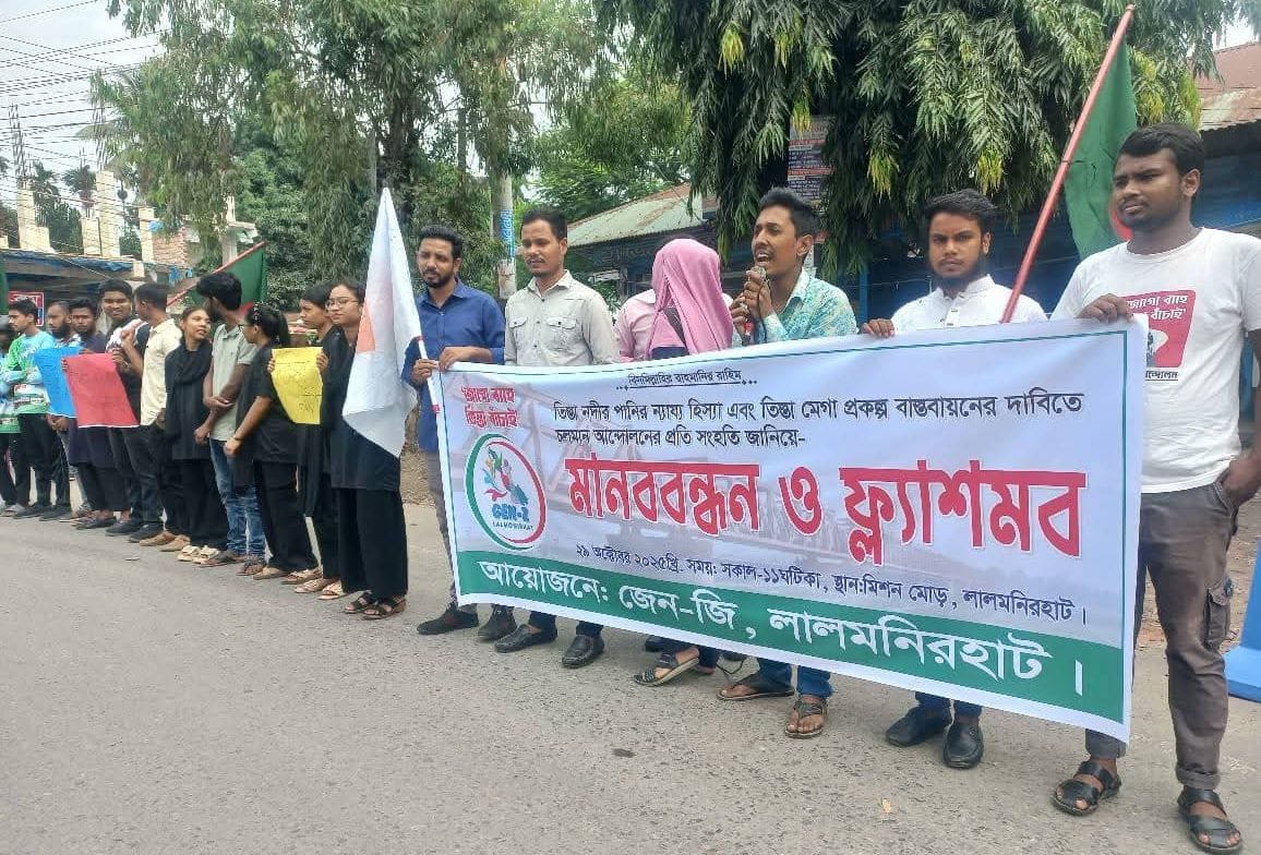 তিস্তা নদী রক্ষায় তরুণদের ফ্ল্যাশমব ও মানববন্ধন অনুষ্ঠিত