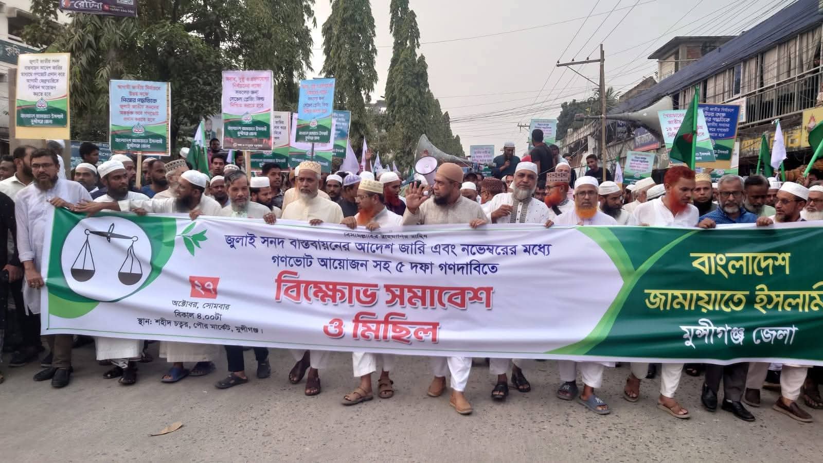 মুন্সীগঞ্জে ৫ দফা দাবিতে জামায়াতের বিক্ষোভ ও সমাবেশ জুলাই জাতীয় সনদ বাস্তবায়ন দেশের জনগণের ন্যায্য দাবি বক্তারা