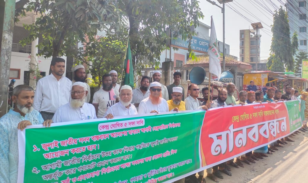দফা দাবিতে দিনাজপুরে জামায়াতের বিশাল মানববন্ধন
