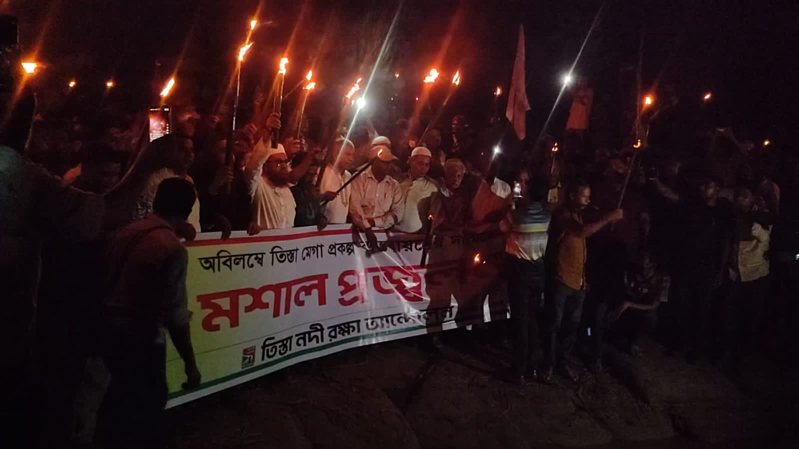 তিস্তা বাঁচাতে হাজারো মানুষের মশাল নিয়ে ব্যতিক্রম প্রতিবাদ