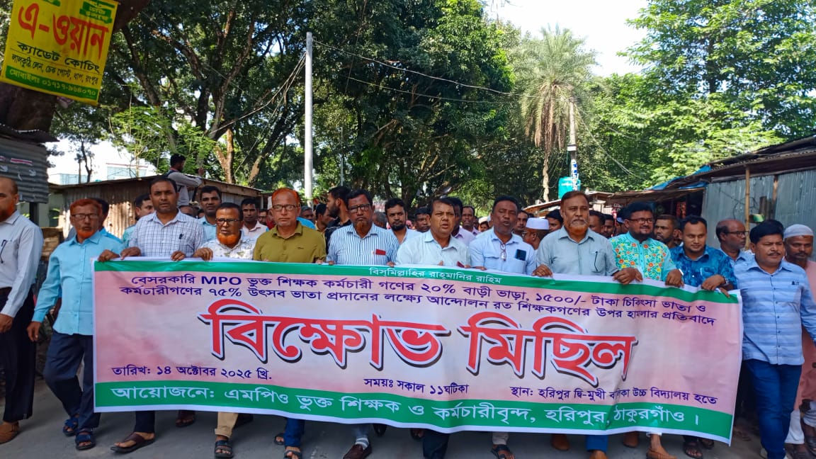 ঠাকুরগাঁওয়ে বেসরকারি শিক্ষকদের বিক্ষোভ মিছিল ও সমাবেশ অনুষ্ঠিত