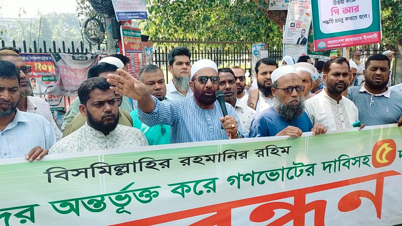 চাঁপাইনবাবগঞ্জে গণভোটের দাবিসহ ৫ দফা বাস্তবায়নের দাবিতে জামায়াতের মানববন্ধন