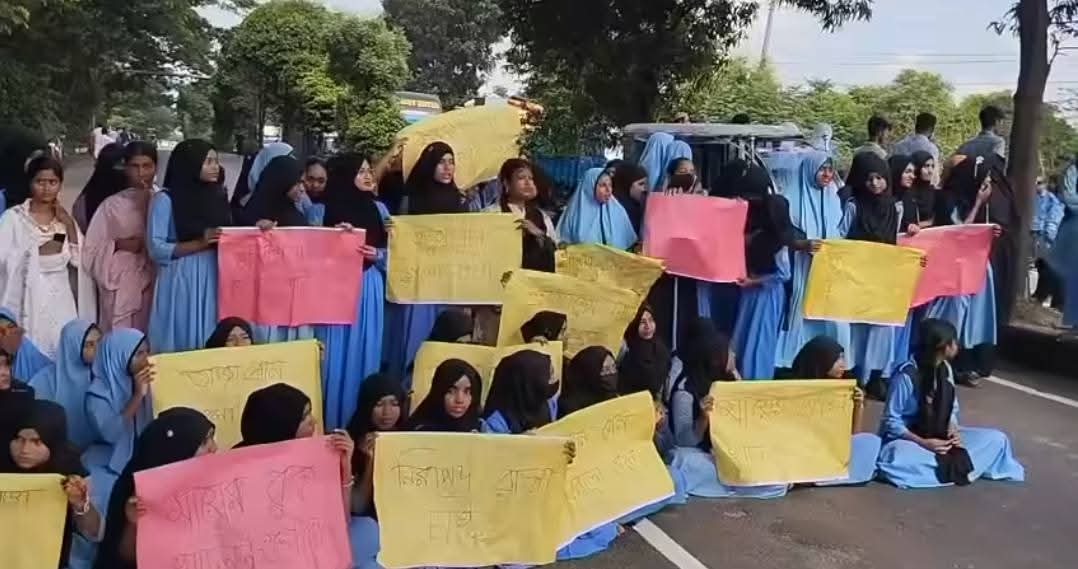 গজারিয়া বাসচাপায় শিক্ষার্থীর মৃত্যু, মহাসড়ক অবরোধ- বাস ভাঙচুর