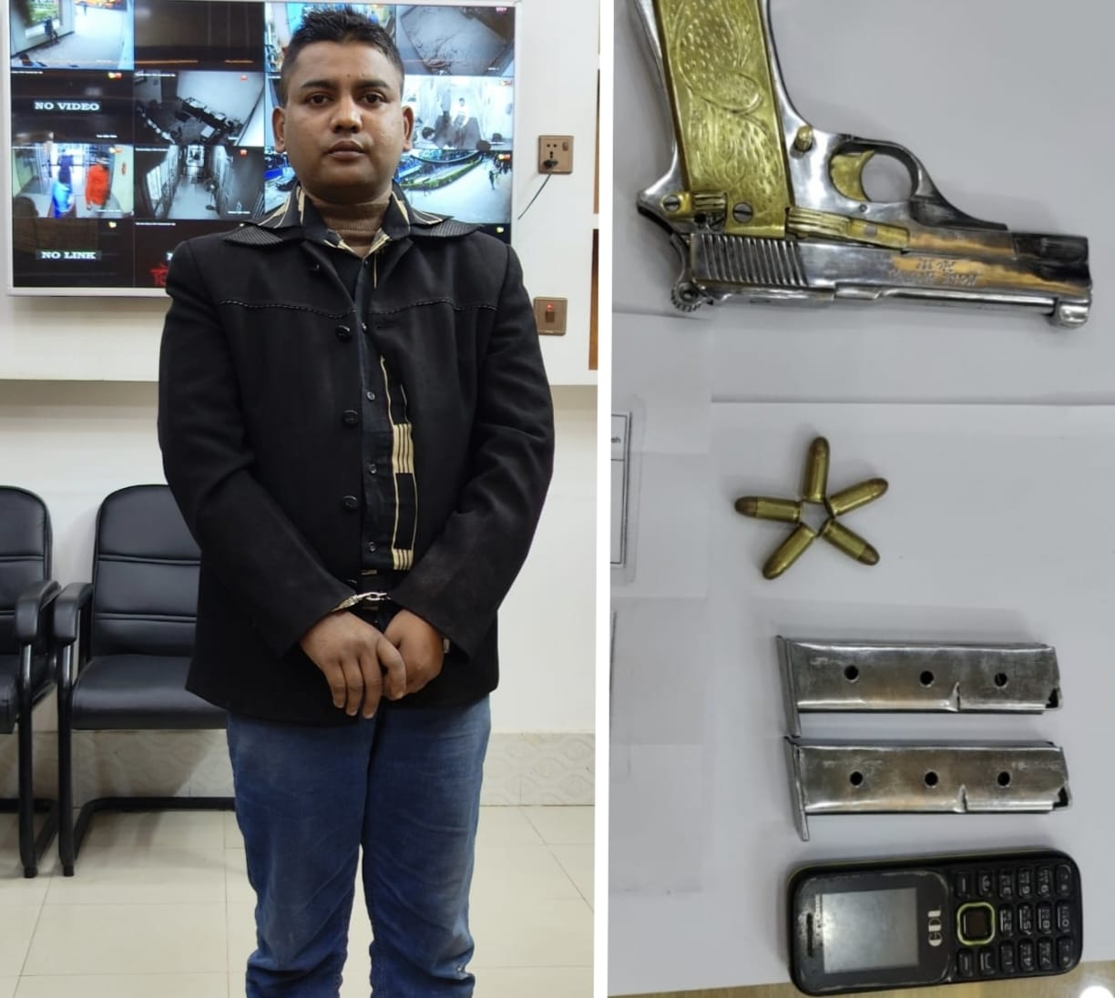 চাঁপাইনবাবগঞ্জ মহানন্দা টোল প্লাজায় চেকপোষ্ট হতে পিস্তল ও গুলিসহ আটক ০১