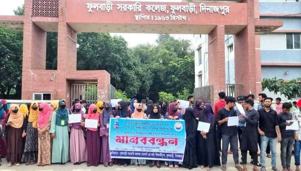 ফুলবাড়ী সরকারি কলেজে ফরম পূরণের ফি বৃদ্ধির প্রতিবাদে শিক্ষার্থীদের ক্লাস বর্জন, বিক্ষোভ ও মানববন্ধন