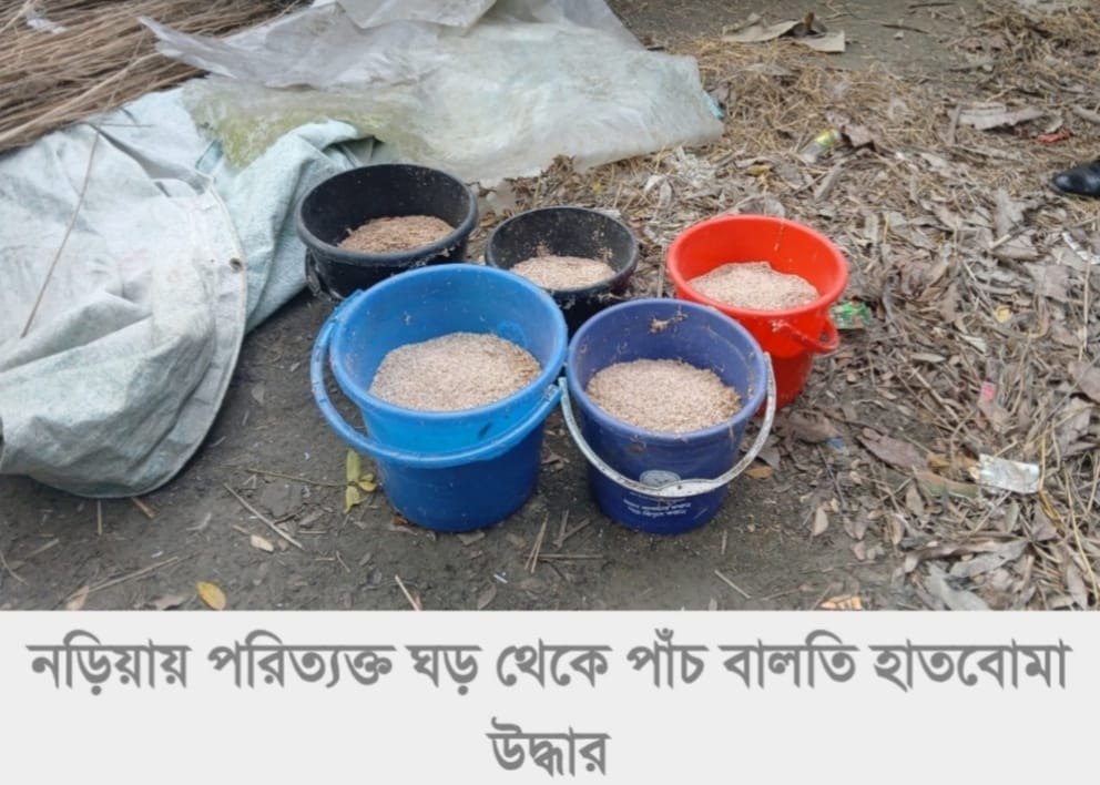 শরীয়তপুর নড়িয়ায় পরিত্যক্ত ঘর থেকে পাঁচ বালতি হাতবোমা উদ্ধার