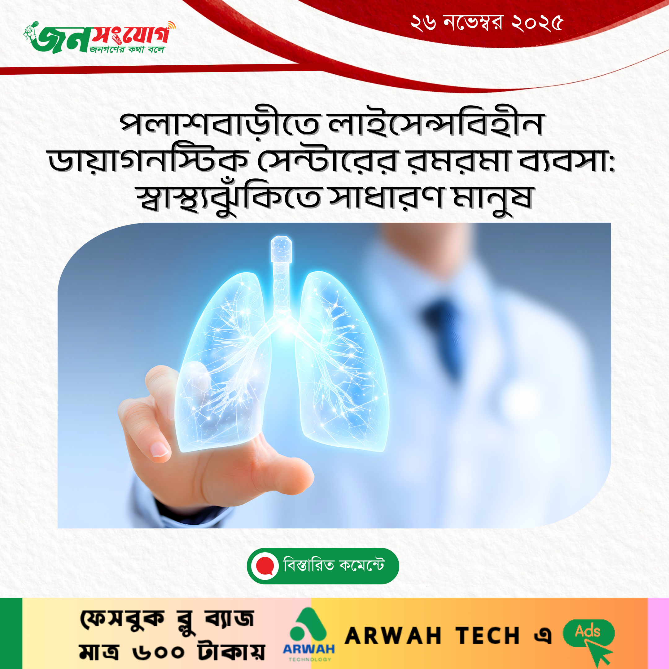 পলাশবাড়ীতে লাইসেন্সবিহীন ডায়াগনস্টিক সেন্টারের রমরমা ব্যবসা: স্বাস্থ্যঝুঁকিতে সাধারণ মানুষ