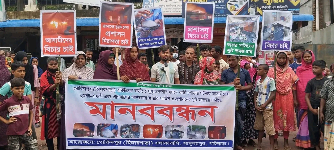 ধাপেরহাটে প্রাণনাশের হুমকি ও সুষ্ঠু তদন্তের দাবিতে মানববন্ধন