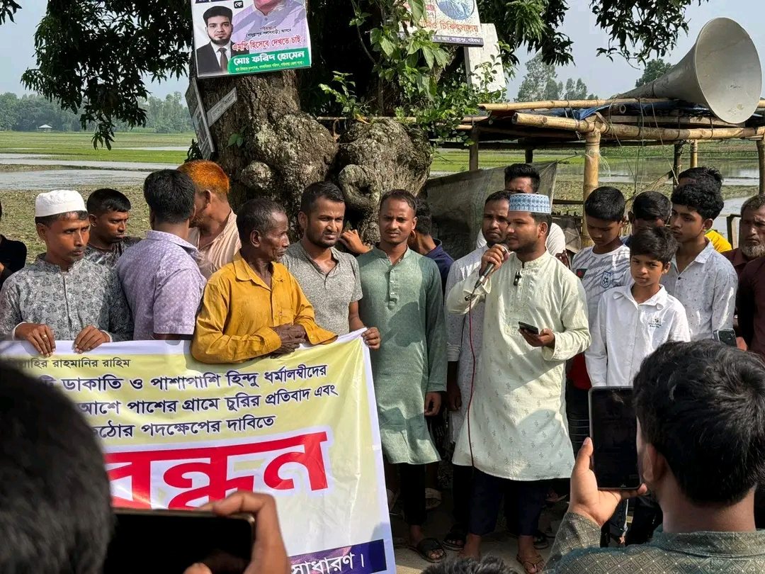 সাদুল্লাপুরের ইদিলপুরে অ/স্ত্রের মুখে হিন্দু পরিবারের উপর ডা/কাতি ও ইউনিয়নের বিভিন্ন স্থানে চু/রির প্রতিবাদে মানববন্ধন