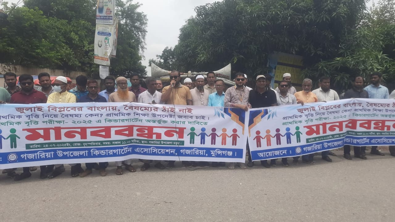 গজারিয়া কিন্ডারগার্টেন এসোসিয়েশনের মানববন্ধন ও স্মারলিপি প্রদান.