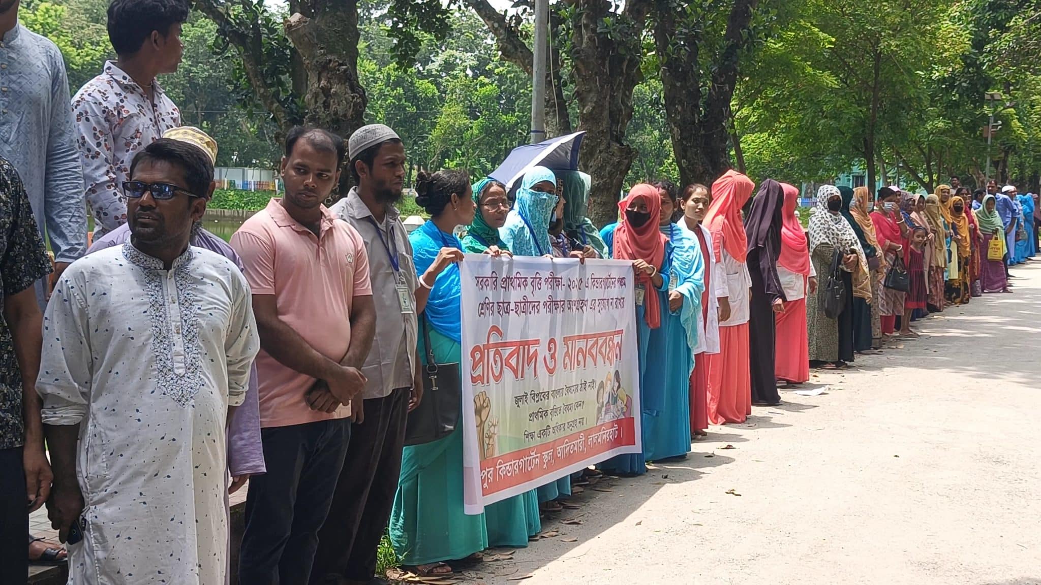 পঞ্চম শ্রেণির প্রাথমিক বৃত্তি পরীক্ষায় কিন্ডারগার্টেন ও বেসরকারি শিক্ষার্থীদেরকে অংশগ্রহণের জন্য মানববন্ধন।