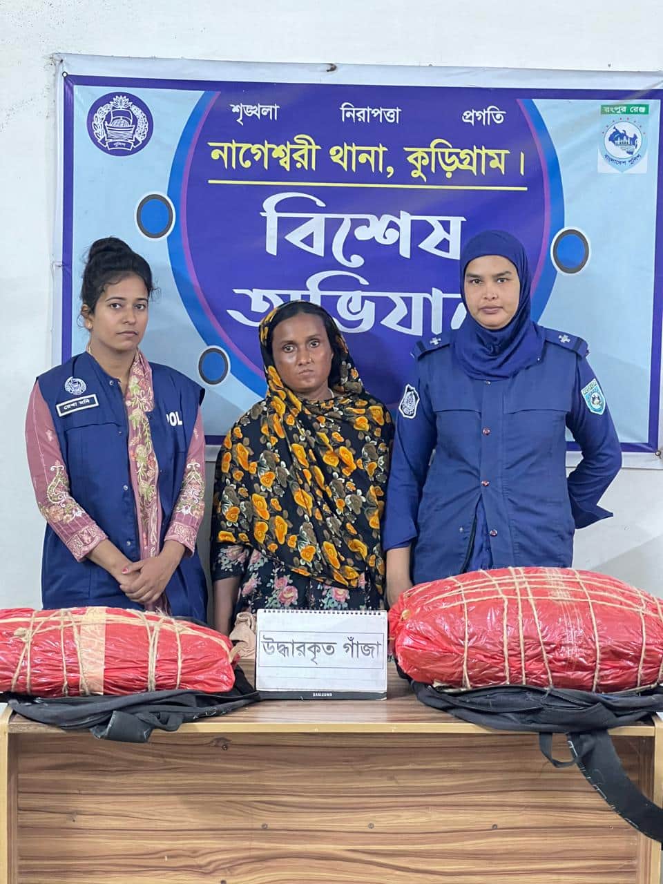 নাগেশ্বরীতে ১৫ কেজি গাঁজাসহ নারী মাদক কারবারি গ্রেফতার