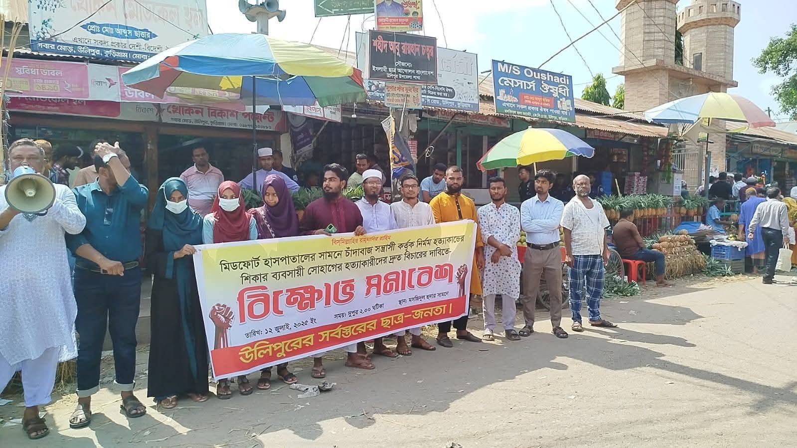 ঢাকা মিটফোর্ডে ব্যবসায়ী সোহাগ হত্যার প্রতিবাদে উলিপুরে বিক্ষোভ মিছিল