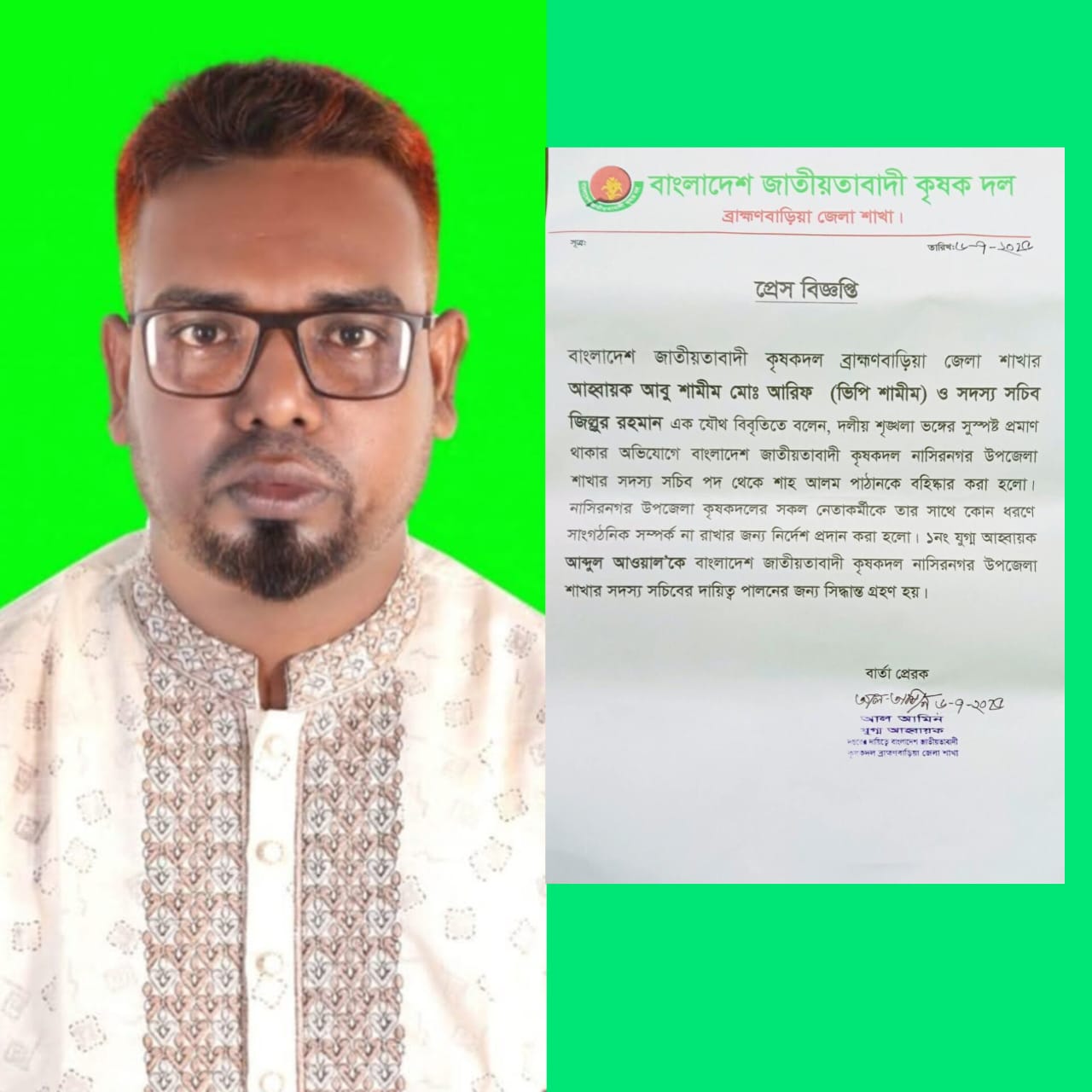 নাসিরনগরে কৃষক দল নেতা বহিষ্কার