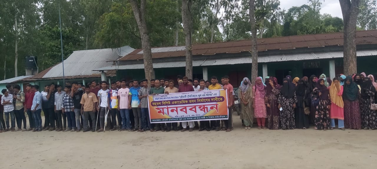 কুড়িগ্রামের রৌমারীতে বহুতল ভবনের দাবিতে শিক্ষার্থীদের মানববন্ধন