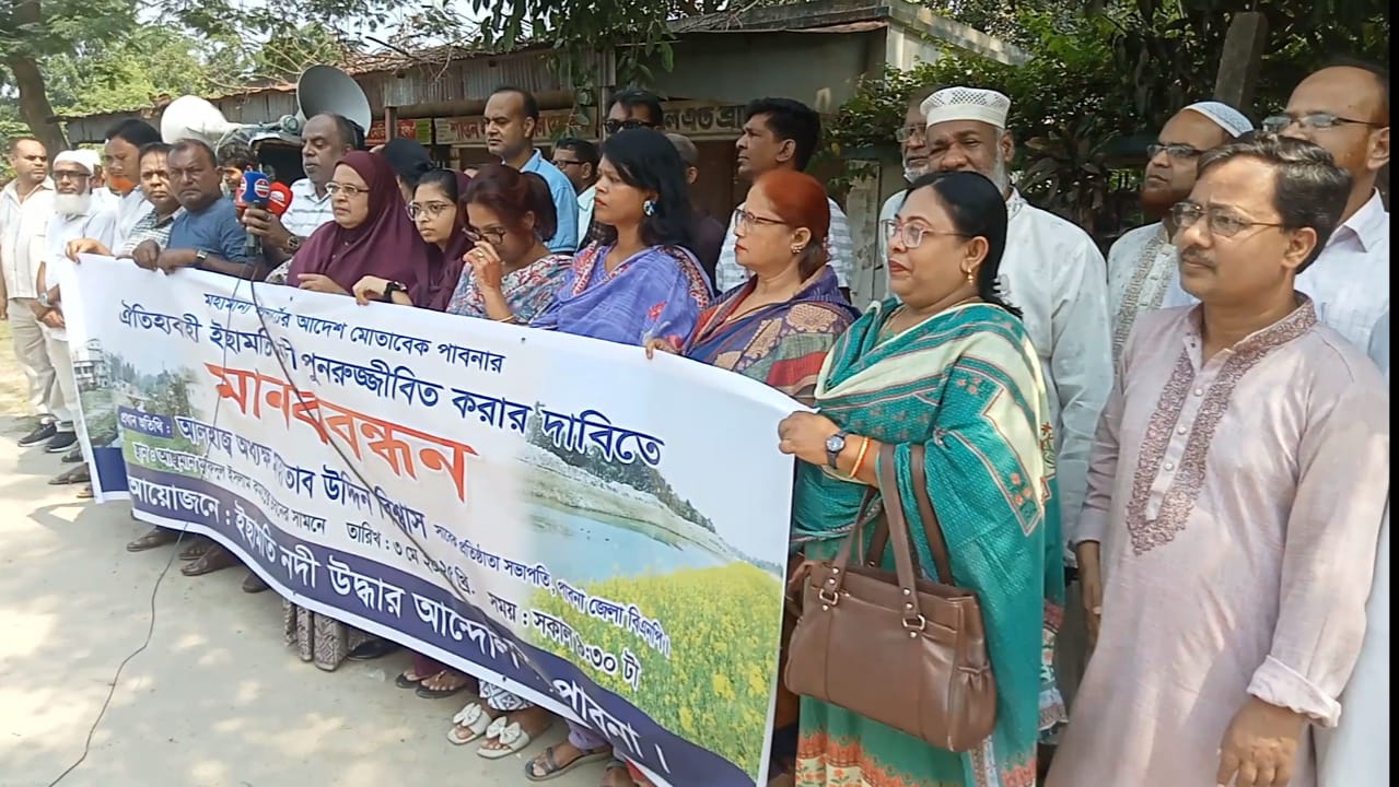পাবনায় ইছামতি নদী পুনরুজ্জীবিত করার দাবিতে মানববন্ধন