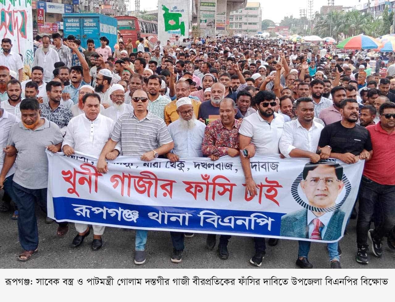 সাবেক মন্ত্রী গোলাম দস্তগীর গাজীর ফাঁসির দাবিতে রূপগঞ্জ উপজেলা বিএনপির বিক্ষোভ