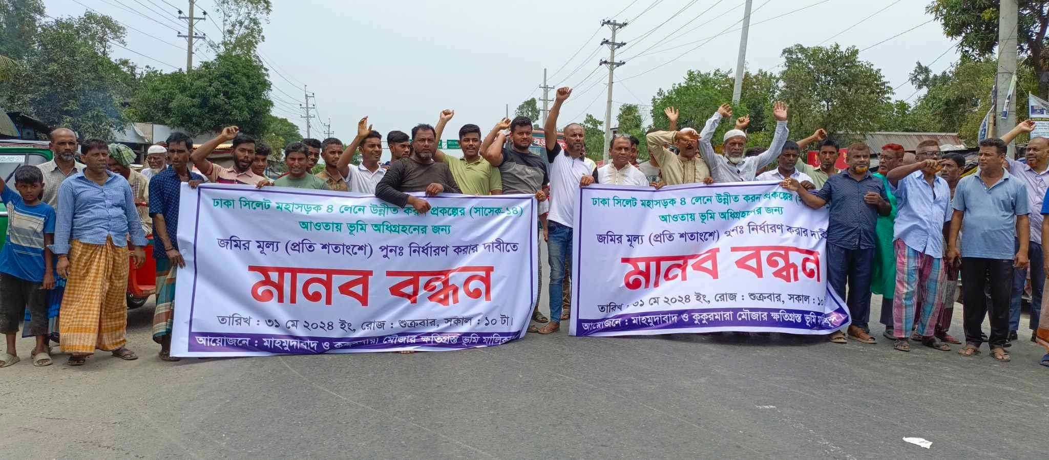 নরসিংদীতে জমি অধিগ্রহণের ন্যায্যমূল্যের দাবিতে মানববন্ধন, মহাসড়ক অবরোধ