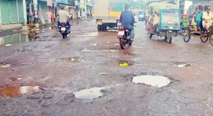 রিয়াজুল হক সাগর, রংপুর অফিস। সড়কে তৈরি হয়েছে অসংখ্য খানাখন্দ। সেগুলোয় বৃষ্টির পানি জমে বড় গর্তে ধারণ করেছে। বেহাল সড়কে